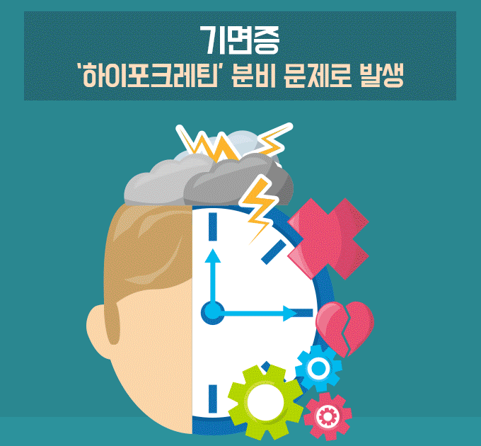 기면증의 정확한 원인은 아직 밝혀지지 않았다고 하는데요, 현재까진 노의 시상하부에서 깨어 있게 각성을 유지하는데 필요한 하이포크레틴 호르몬을 제대로 분비하지 못하기 때문인 것으로 추측되고 있습니다