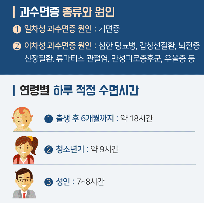 이렇게 본인도 모르게 수면에 빠져들면 과수면증을 의심해야 합니다 과수면증 원인은 크게 기면증 때문에 발생하는 일차성과 다른 질환의 영향으로 나타나는 이차성으로 구분된다고 합니다