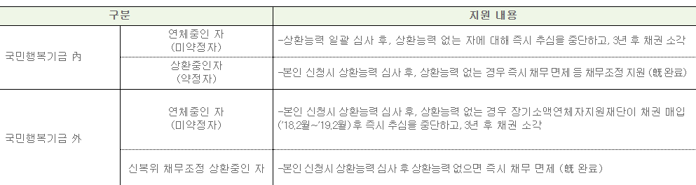 국민행복기금은 정부의 장기소액연체자 재기 지원 방안 발표 이후 10년 이상 연체중인 미약정 채무자 40만 3000명의 상환능력을 일괄 심사해 상환능력이 없다고 판단한 33만 5000명의 1조 6000억원 규모의 채권에 대한 채심을 중단했습니다