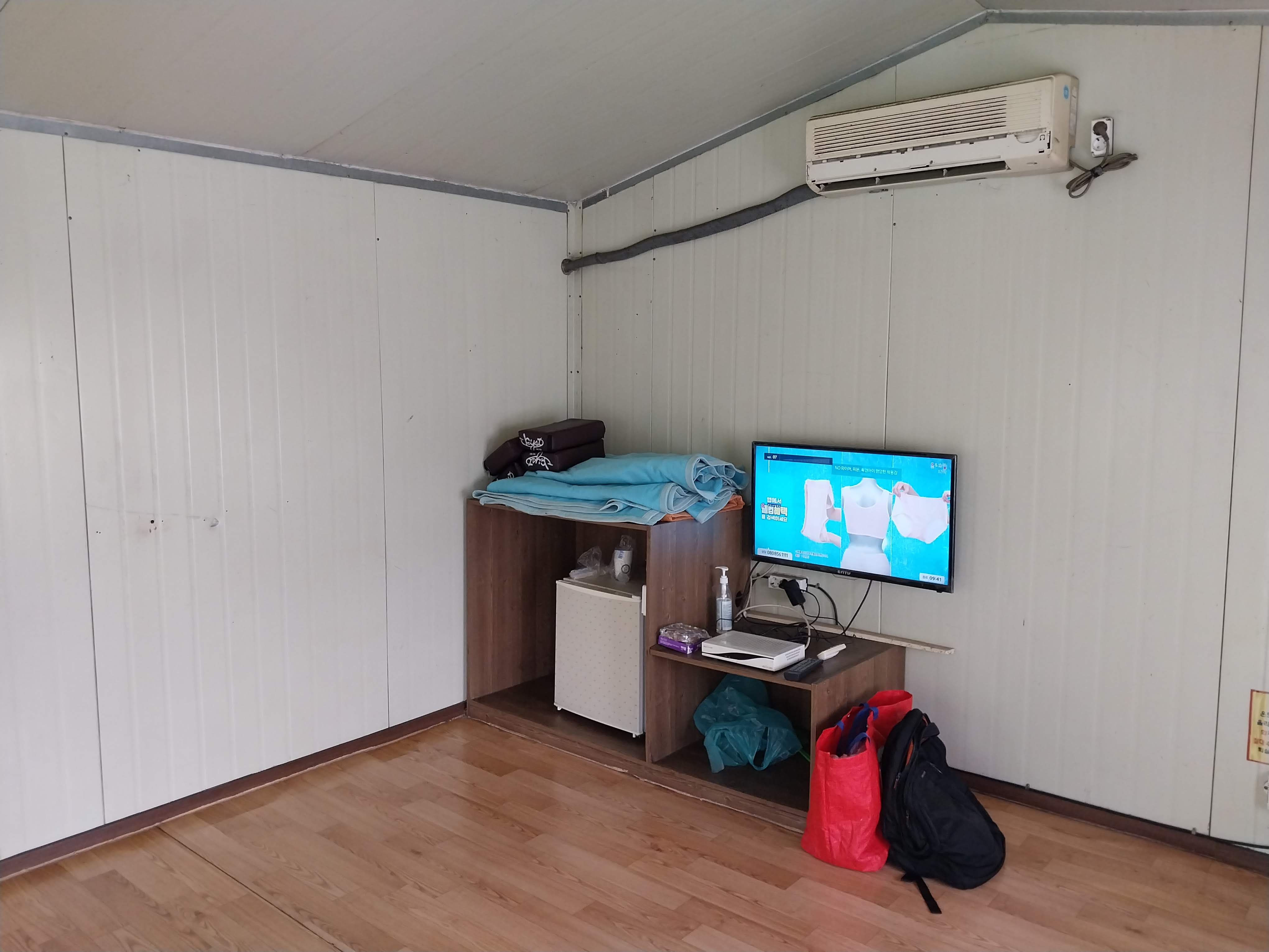 대동지낚시터 좌대 내부모습~ 연식이 제법 있어서 시설이 노후화 되었지만 있을건 다 있음 에어컨 냉장고 TV 전기난방