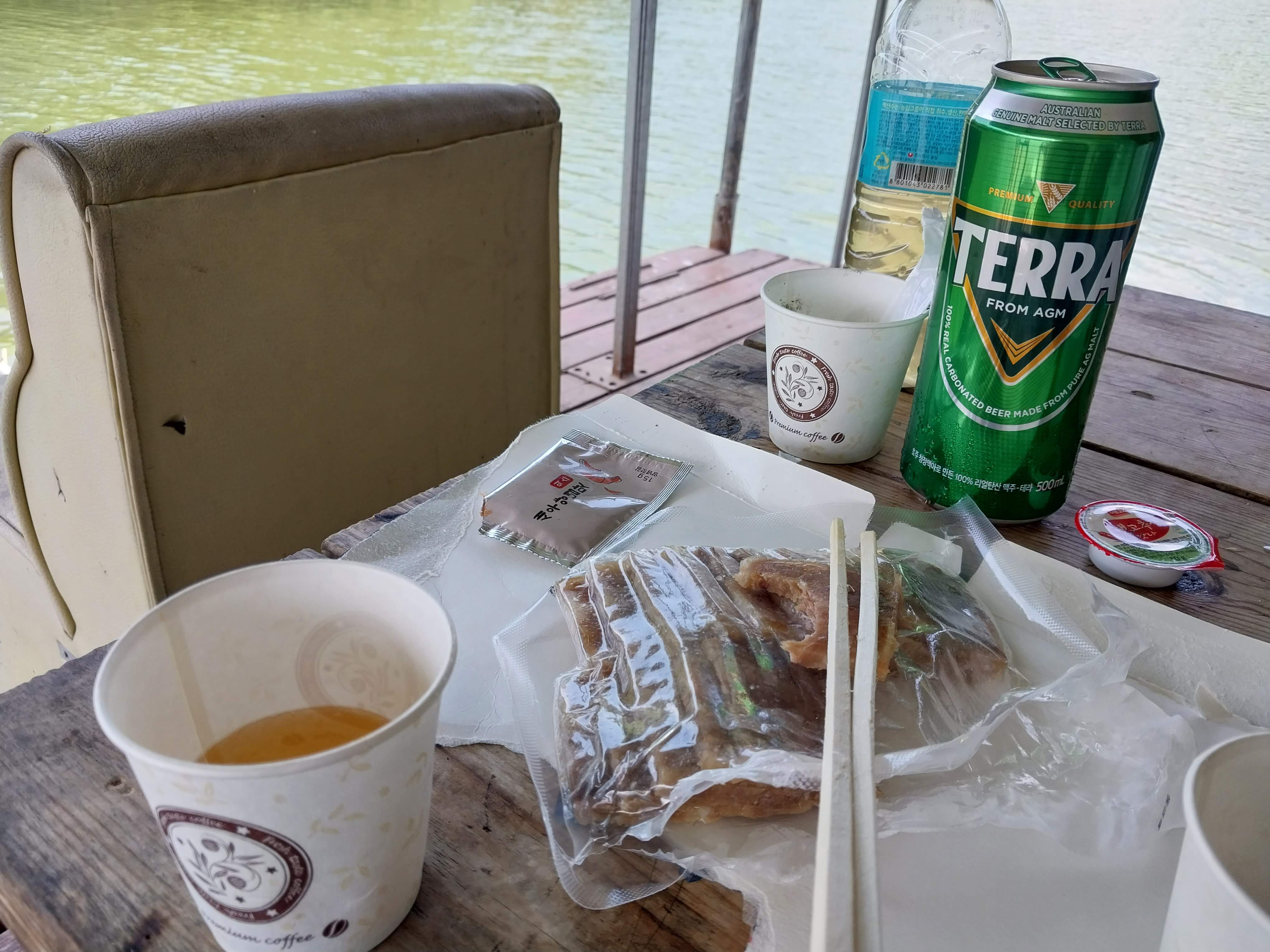 좌대 외부에는 테이블과 가스버너까지 설치되어 있어 아주 편리함~ 소형 좌대지만 2~3명이 여유롭게 이용할 수 있고 청소상태도 아주 양호함